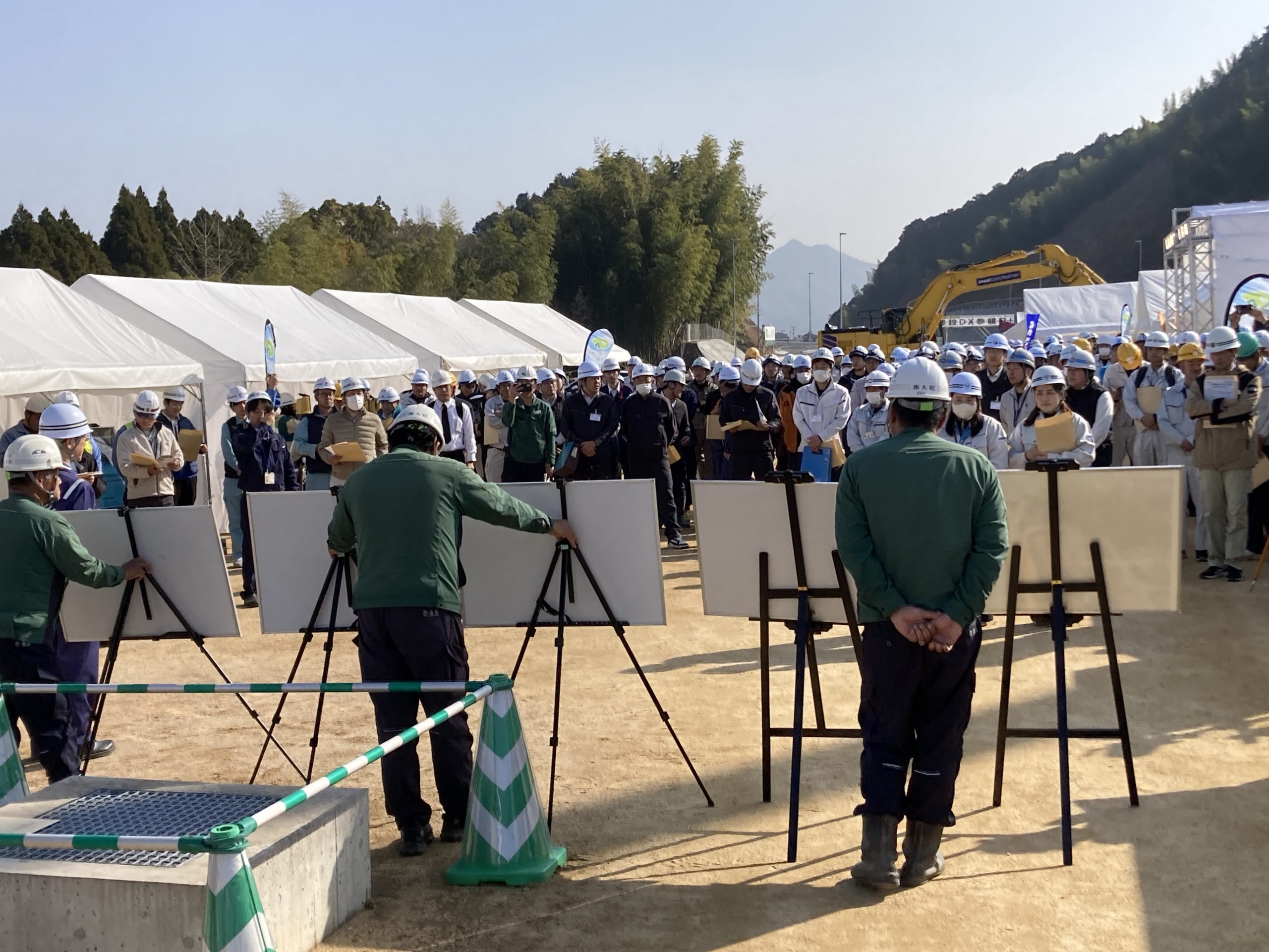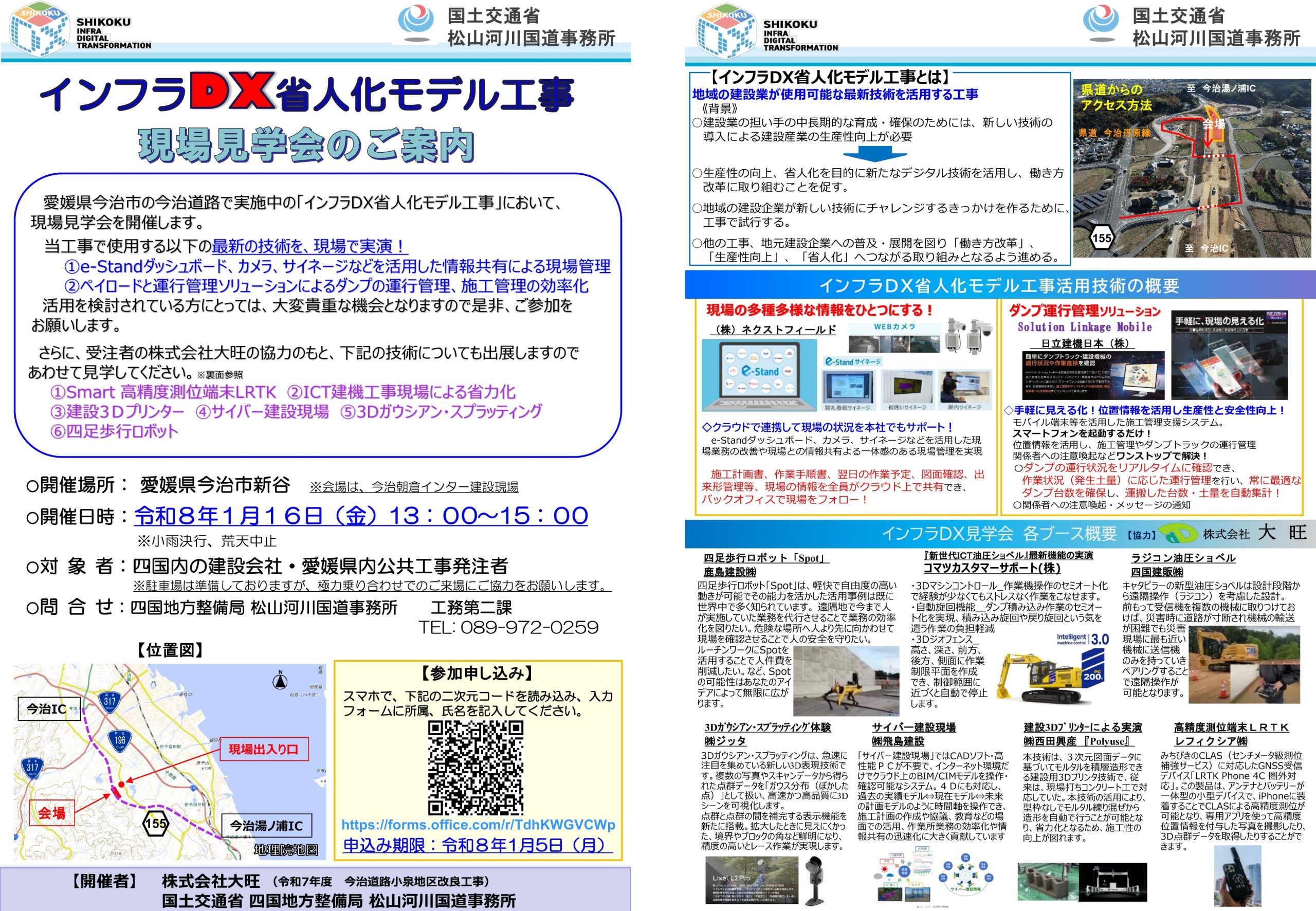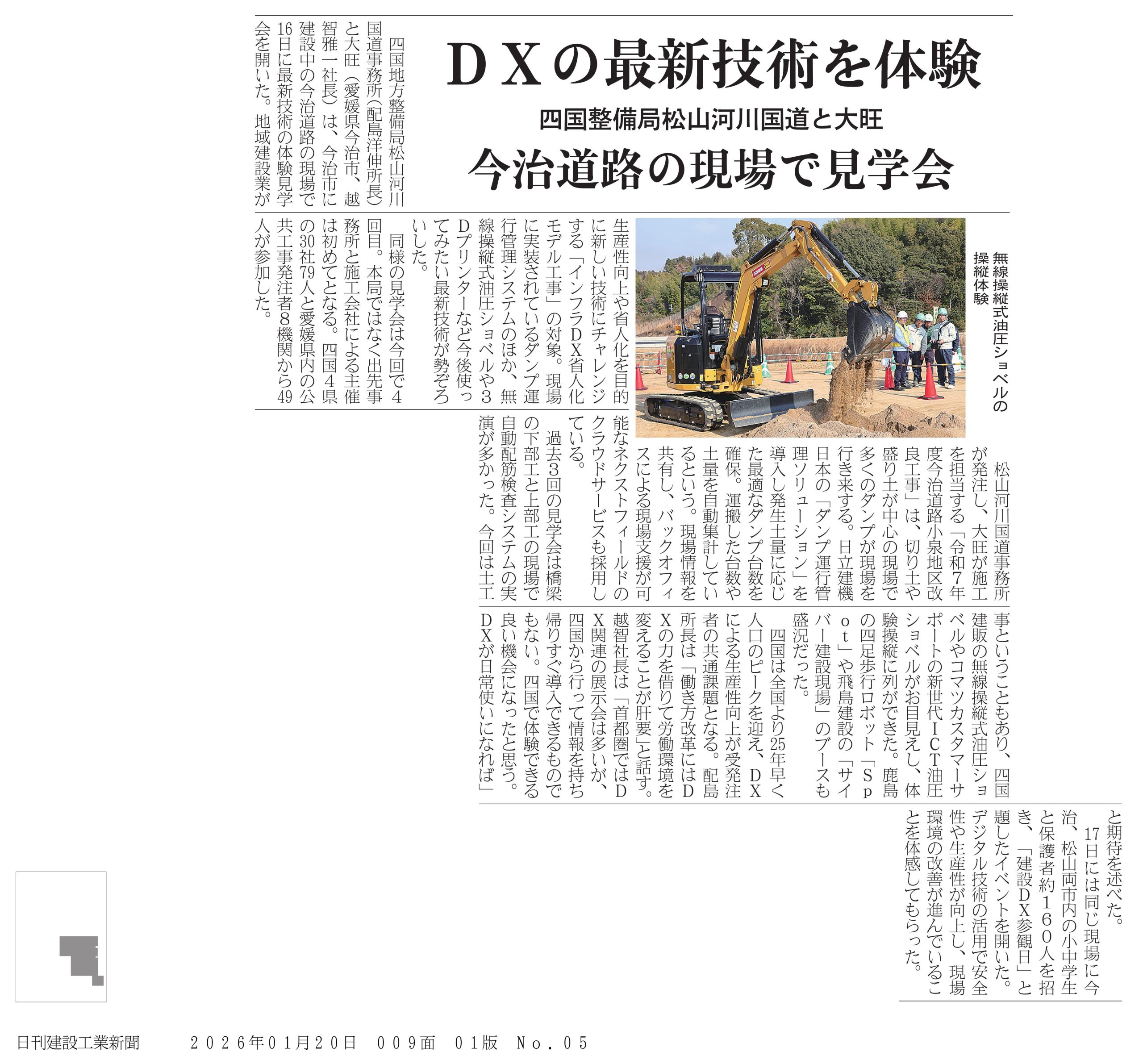 国土交通省発注の『インフラDX省人化モデル工事』 (受注者 株式会社大旺 「令和7年度 今治道路小泉地区改良工事」) 現場見学会が開催されました。
